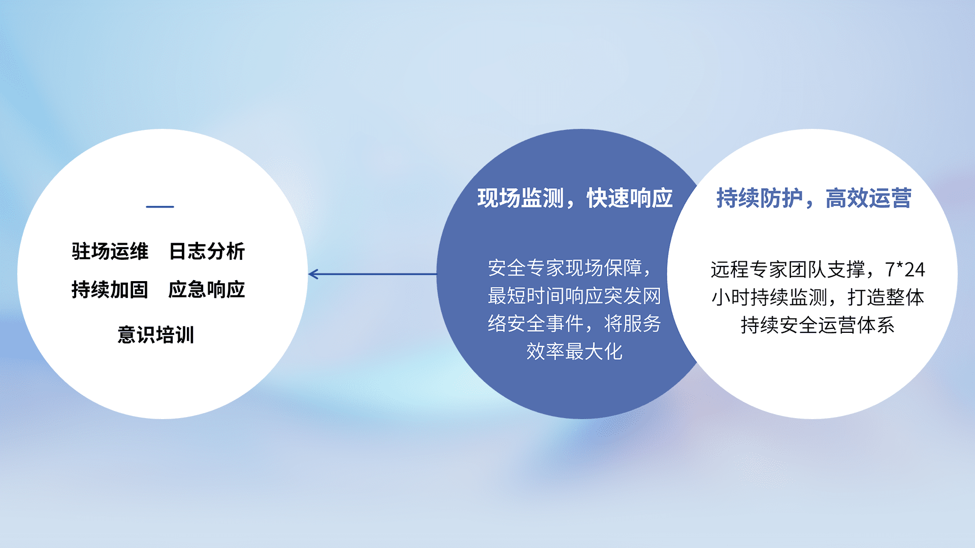 7X24小时持续监测安全事件,保持安全策略有效性,降低资产脆弱性风险,,精准拦截黑客攻击,,,减少被黑客利用的机会,,第一时间遏制,,,,降低损失。。